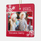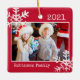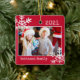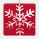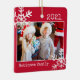 Custom Red Photo Border White Snowflakes Holiday Ceramic Ornament
