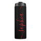 Custom Red Script Name Black Thermal Tumbler
