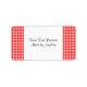 Custom labels with a retro country red and white plaid pattern with script letters. Click Customise It to change fonts, sizing, background colours, even save your design for later.