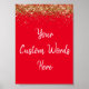 Custom Red White & Gold Birthday Party Photo Prop Poster