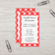 Custom Restaurant or Food Service business cards and option coupon or gift certificate on the back with red and white checked plaid and friendly letters.