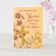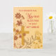A Catholic design in gold, red, brown and yellow colours that offers a beautiful setting to wish a great 60th Jubilee to a Nun. This cross with flowers and leaves will make the sister's Anniversary even more special. This is the religious card you need. Personalise the relationship on this card.