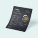 Custom restaurant menu | Black modern photo menu, A simple custom logo and 4-photo takeout menu template in a modern minimalist style on a black background.