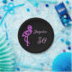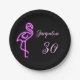 Custom retro 30th birthday neon pink flamingo paper plate