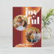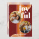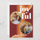 Contemporary classic Christmas holiday season greeting card with light and dark red, coral and pastel peach orange coloured abstract pattern with real gold foil JOYFUL wish text. With room to customise or personalise with two photos, a family name (or individual names) on the front, and a customisable season greeting message on the backside of the card.