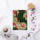 Contemporary classic Christmas holiday season greeting card with light and dark green, pink and red coloured abstract pattern with real gold foil JOYFUL wish text. With room to customise or personalise the text on the front, and family name (or individual names) and a customisable season greeting message on the backside of the card.