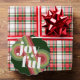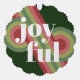 Contemporary classic Christmas holiday season ornament card with light and dark green, pink and red coloured abstract pattern and JOYFUL wish text in crisp white. With room to customise or personalise with a family name (or individual names) and a personal season greeting message.