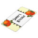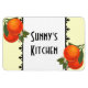 A kitchen fridge magnet with deco letters and vintage art of oranges and orange flowers on a creamy background.