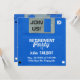 Personalised retirement party invitation card with a blue retro computer floppy disc 3.5 inch. Perfect for a new ex-computer engineer or anyone who was an office worker.