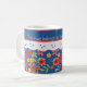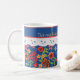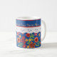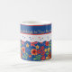 A pretty White Ceramic Coffee Mug to personalise, with a nostalgic feel and a retro Floral mini-print pattern on a Deep Blue background, trimmed with White Lace-effect. Part of the Posh & Painterly 'Granny Print' collection, this mix'n'match hand-painted paper collage pattern can be easily adjusted to fit any Mug.