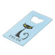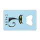 This personalised credit card bottle opener design features a retro mid century modern "atomic" black cat with big yellow eyes and a curly tail.