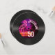 Custom Retro Record Neon Flamingo 50th Birthday Invitation