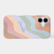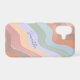 Personalized iPhone case with a name in trendy handwriting script calligraphy. Abstract colorful design, hand painted retro muted colors stripes waves, in colorful rainbow pastel nuances. Fashionable tech accessory for you to protect your cellphone or a great idea of custom gift under 30 dollars for her. Suitable for many occasions and celebrations, like birthday, Christmas, Mother’s Day, anniversaries, graduation, even retirement. Aesthetic artsy feminine, cute, pretty, girly, premium look useful electronic item.
