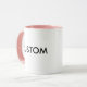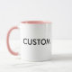 Custom Ringer 11oz Ceramic Mug - PINK Lip & Handle, 3.8” high x 3.2” diameter. 11 oz or 15 oz options. Microwave and dishwasher safe. FDA food and beverage safety approved. Black, maroon, hunter green, light blue, lime, navy blue, orange, pink, yellow, and red colour options.