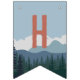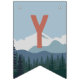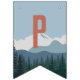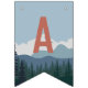 Designed to match our On The Edge kids rock climbing birthday party invitations, this fun and adventurous bunting flag design features fourteen custom text fields to spell out your message (shown with "Happy Birthday") on a mountain range and pine forest background. The first and last flags have an additional illustration of a mountain climber hanging from a rock.