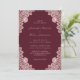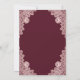 These elegant rose gold and burgundy wedding invitations featuring rose gold floral lace on a burgundy background are perfect for inviting your guests to your burgundy and rose gold rustic wedding party.