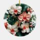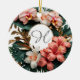 Custom Rose Gold Floral Monogram Round Keepsake Ceramic Ornament