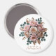 Custom Rose Gold Floral Monogram Round Magnet
