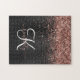 Custom Rose Gold Glitter Black Sparkle Monogram Jigsaw Puzzle