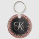 Easily personalize this trendy elegant keychain design featuring pretty rose gold sparkling faux glitter on a black brushed metallic background.