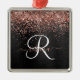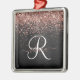 Custom Rose Gold Glitter Black Sparkle Monogram Metal Ornament