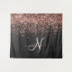 Custom Rose Gold Glitter Black Sparkle Monogram Tapestry