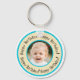 Custom Round Birthday Photo Beige & Turquoise Key Ring
