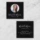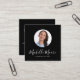 Feminine, square, professional, black business cards or personal profile cards with your name and title on the front and a round photo template for uploading your own photo or graphic. Customisable name, title/company name and contact information on the back. A minimal and classy design for any industry.