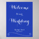 Custom royal blue wedding reception sign print with swirl and customisable text - you can add bride's and groom's name and wedding date. Dimensions of the sign print (poster) are 18 inches by 24 inches.