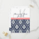 Custom RSVP Navy Damask Wedding Postcard