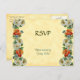 Custom RSVP postcards with script letters in brown and green and vintage art of white and orange poppies and blue cornflowers faux parchment background. Click Customise It to change fonts, colours, sizing and more, even save your design for later.