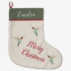 Custom Christmas stocking featuring three ruby-throated hummingbirds.