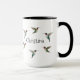 Custom Mug for hummingbird lovers featuring a charm of ruby-throated hummingbirds. The font style, font size and colour can be changed by clicking on "customise further". All bird imagery is taken from original artwork.