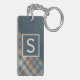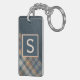 Contemporary tan, brown, beige, taupe, and dark teal blue tartan plaid, and a faux leather texture pattern background. With room to customise or personalise with a name monogram or initial of your choice. Beautiful, modern, and cool keychain or suitcase luggage tag for the trend-savvy and art-loving hip trendsetter, artsy motif lover.