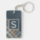 Custom Rustic Dark Teal Blue Stripe Plaid Pattern Key Ring