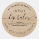 Rustic Homemade lip balm Label in a modern kraft design with elegant calligraphy font, space for your ingredients, and other details. Your Brand name with a statement made with love by (your name). All text is editable,