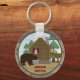 Personalized keychain for campers, hunters, fishermen, canoe enthusiasts and outdoorsmen. Log Cabin in the woods with wildlife on camouflage background. Customize it with your own name, slogan or other information.