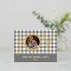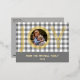 Contemporary classic Christmas holiday season greeting card with classic chic white and grey coloured traditional Buffalo Lumberjack plaid tartan pattern. With option and room to customise a personal family photo, name and year date of your choice on the front, and a customisable season greeting message on the backside of the card.