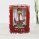 Unique, classic, trendy, pretty and decorative Holiday card, with a pretty dark red and green coloured country cottage style floral wreath pattern. With room to customise or personalise with a photo and names (or family name) of your choice. And a customisable season greeting poem on the inside of the card on a rustic country cottage style weathered farmhouse barn wood planks texture pattern.