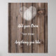 Add a personal touch to your wedding or party with this Custom Rustic Sign. Featuring a wood-style background and a white fingerprint heart, this sign can be fully personalised with your own text beneath the heart. Perfect for welcome signs, gift tables, or any special message for your guests.