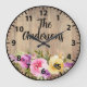 Custom Rustic Wood Pink Purple Yellow Roses Large Clock