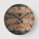 Custom Rustic Wood Texture & Deer Monogram Round Clock