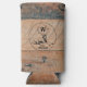 Custom Rustic Wood Texture & Deer Monogram Seltzer Can Cooler
