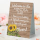 Modern yet rustic polystyrene sign with 'Welcome to the Mimosa bar' text and simple instructions on to pour a delicious Mimosa cocktail on a popular farmhouse weathered barn wooden planks pattern background. A fun way to invite your wedding reception, engagement, birthday or anniversary party guests to mix themselves a refreshing alcoholic beverage at your special event.