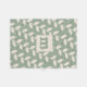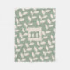 Custom Sage Green Retro Leaf Pattern Monogram Fleece Blanket