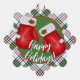 Unique, classic, cute, and decorative Christmas holiday ornament card with Santa's red mittens on a classic red, green, white and blue tartan pattern background and classic Happy Holidays quote text. With room to customise or personalise with family name, greeting, or wish of your choice.
