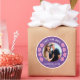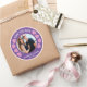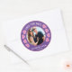Announce your special day in style with this customizable round "Save the Date" sticker. Featuring your photo at the center, surrounded by gold heart accents and elegant text on a sleek purple background, this sticker is perfect for weddings, engagements, or special events. Use it for invitations, envelopes, or party favors to create a lasting impression for your big day.