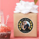 Announce your special day in style with this customizable round "Save the Date" sticker. Featuring your photo at the center, surrounded by gold heart accents and elegant text on a sleek black background, this sticker is perfect for weddings, engagements, or special events. Use it for invitations, envelopes, or party favors to create a lasting impression for your big day.
