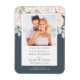 Announce your special day with this wedding save the date magnet, featuring an elegant photo template adorned with botanical blush pink florals and a subtle light blue-grey design. Perfect for showcasing your engagement couple photo, this design combines simple minimalist elements with minimal typography for a touch of classic elegance. The minimal traditional style is enhanced with a timeless photography border, making it a sophisticated keepsake for your guests.