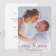 This simply chic photo wedding save the date flat card template features an elegant, minimalist, modern design. The default shape is rounded corners, but sharp corners also work wonderfully with this design, so try both looks in editing mode and see which grabs you! The front features your favourite photo with your first names and a 'save the date' message in black conveyed with a striking blend of two distinct fonts, with 'the' in a light, flowing script between the rest of the message, which is in upper case with a bold, crisp formal look.This design element is included on both sides and can't be altered, though you might choose to delete it on the back for an even simpler look. And on the back you can of course in addition to replacing our sample info with your own, delete text fields that you don't need, or change the wording, as well as change font, size and colour. The default text colours on the back are black and a slightly softened black. The default background colour on the back is set as transparent, to let the paper colour simply serve as the base tone. But you can edit this and choose a colour and change the look in this regard as well to suit your style. Customise this elegant minimalist wedding save the date flat card template with your photo and your inspiration and make it uniquely yours!